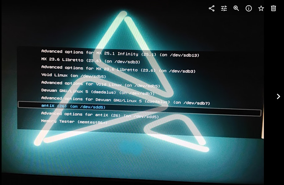 So I boot antiX from there and it fails to boot