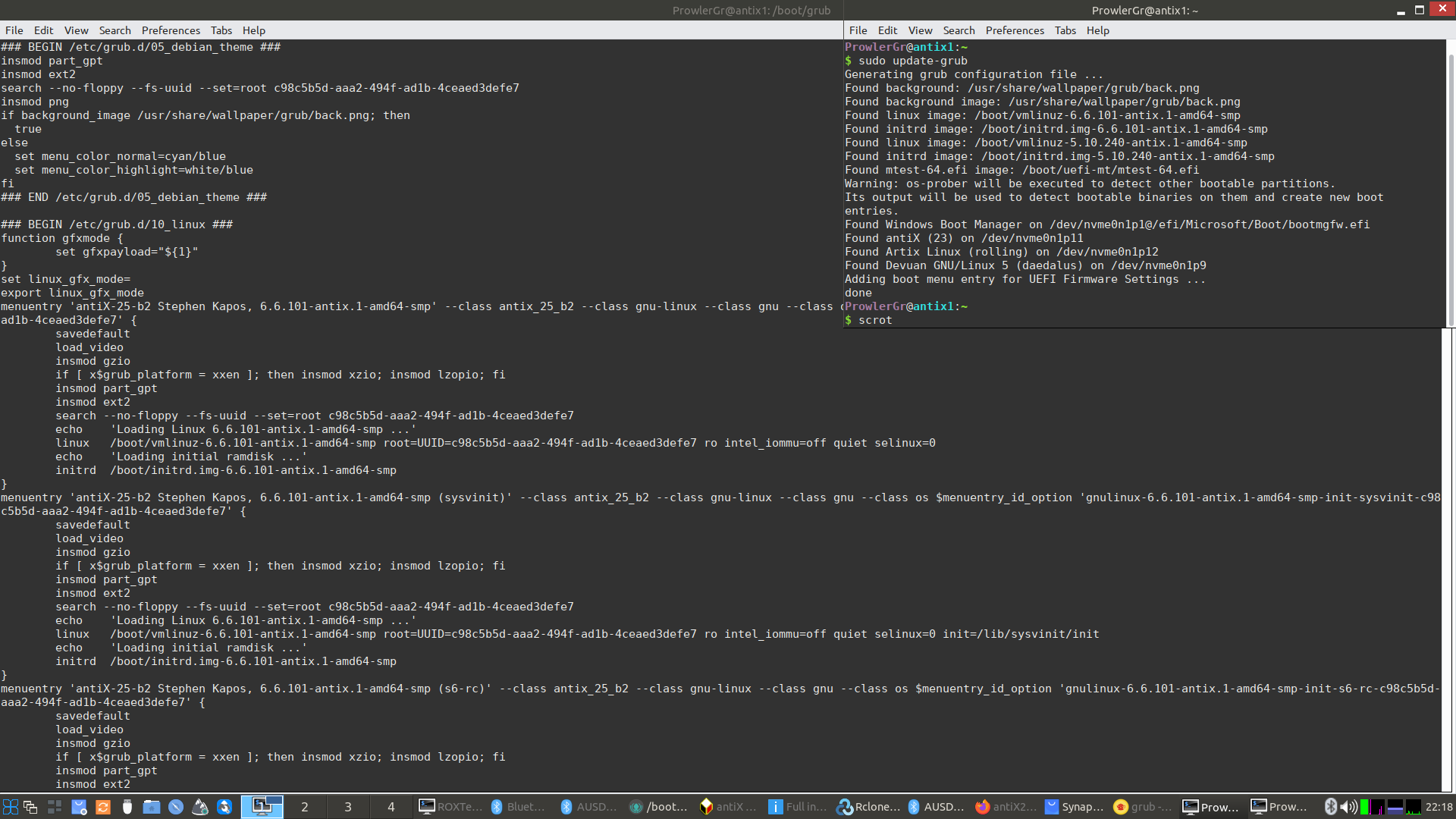 Then I do update-grub in antiX