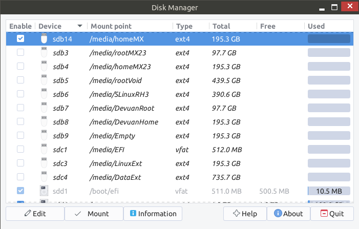 I think Thunar needs configuring… it is not finding any unmounted partitions, … only the root filesystem?