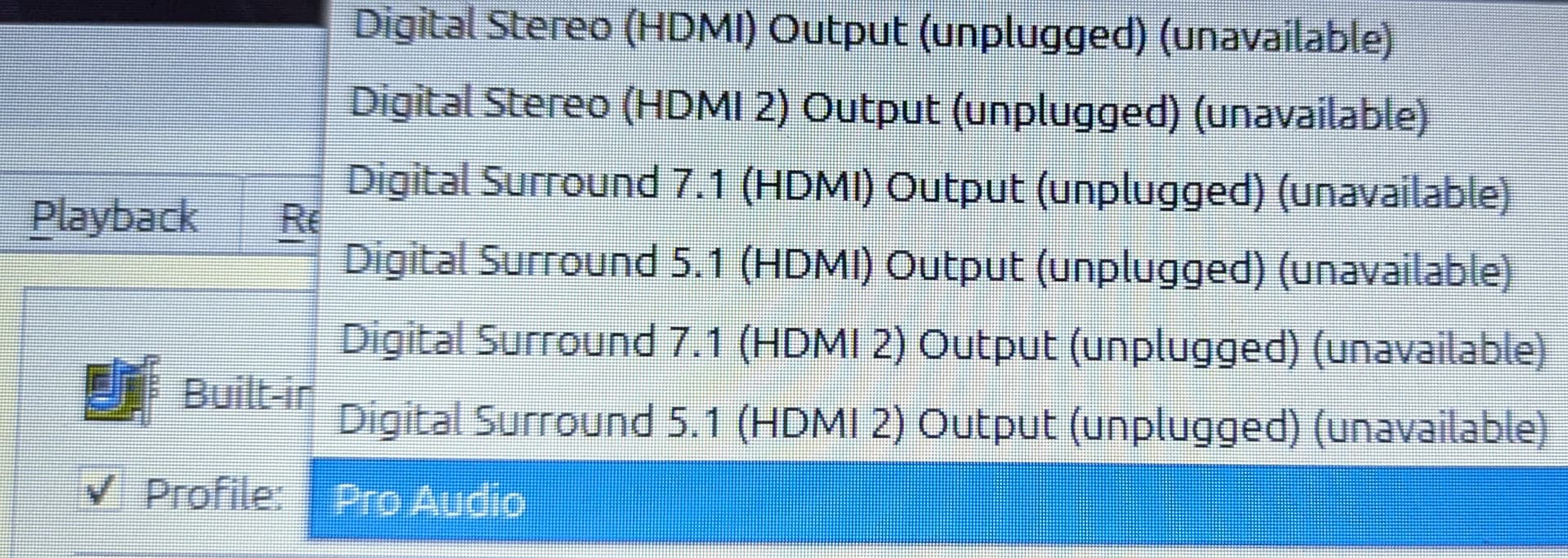 what does Pavucontrol have under output devices? … is that those HDMI’s in last reply.