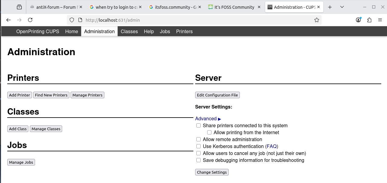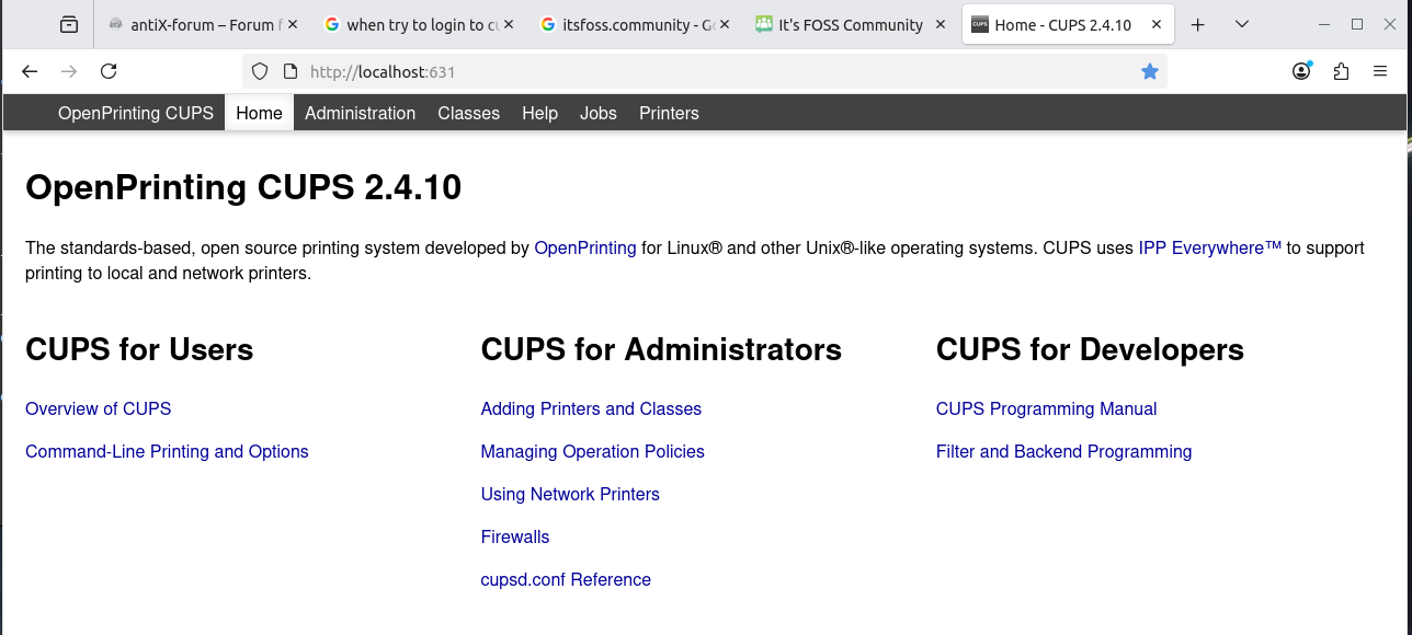 So I point the browser to http://localhost:631