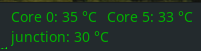 Oh well. Starting sway and mine rises up to 110 degrees Celcius. But when compiling gcc on Gentoo, it gets to 50C. So I guess it is maybe a fact of background processes.
