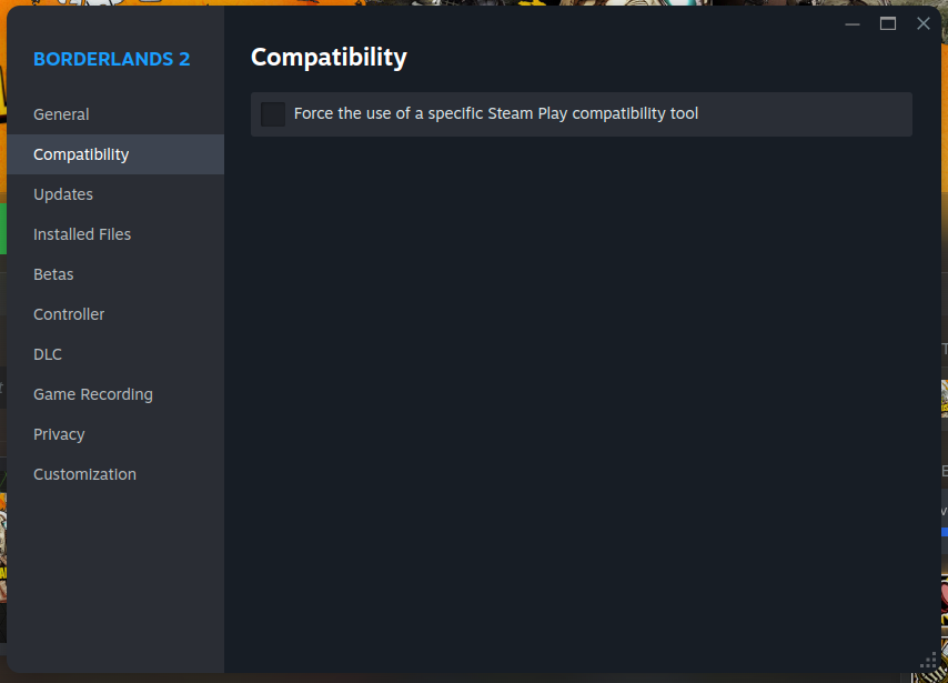 e.g. I could instruct Steam to install and run the Windows version of Borderlands 2 instead of the Linux native (check the box “Force the use of a specific Steam Play compatibility tool”: