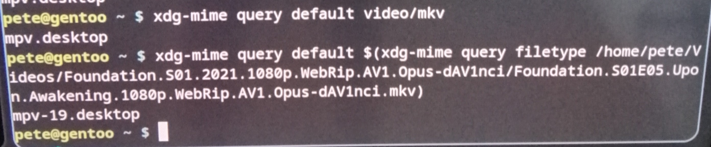 But no luck. It seems my issue is not xdg-mime issue because it shows mpv. Sorry for the crappy pic!