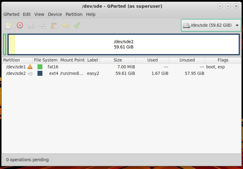 … hopig it would take care of the two partitions. Well, I guess it would have but I created a 10 GB virtual drive and the stick has got a size of 64 GB.