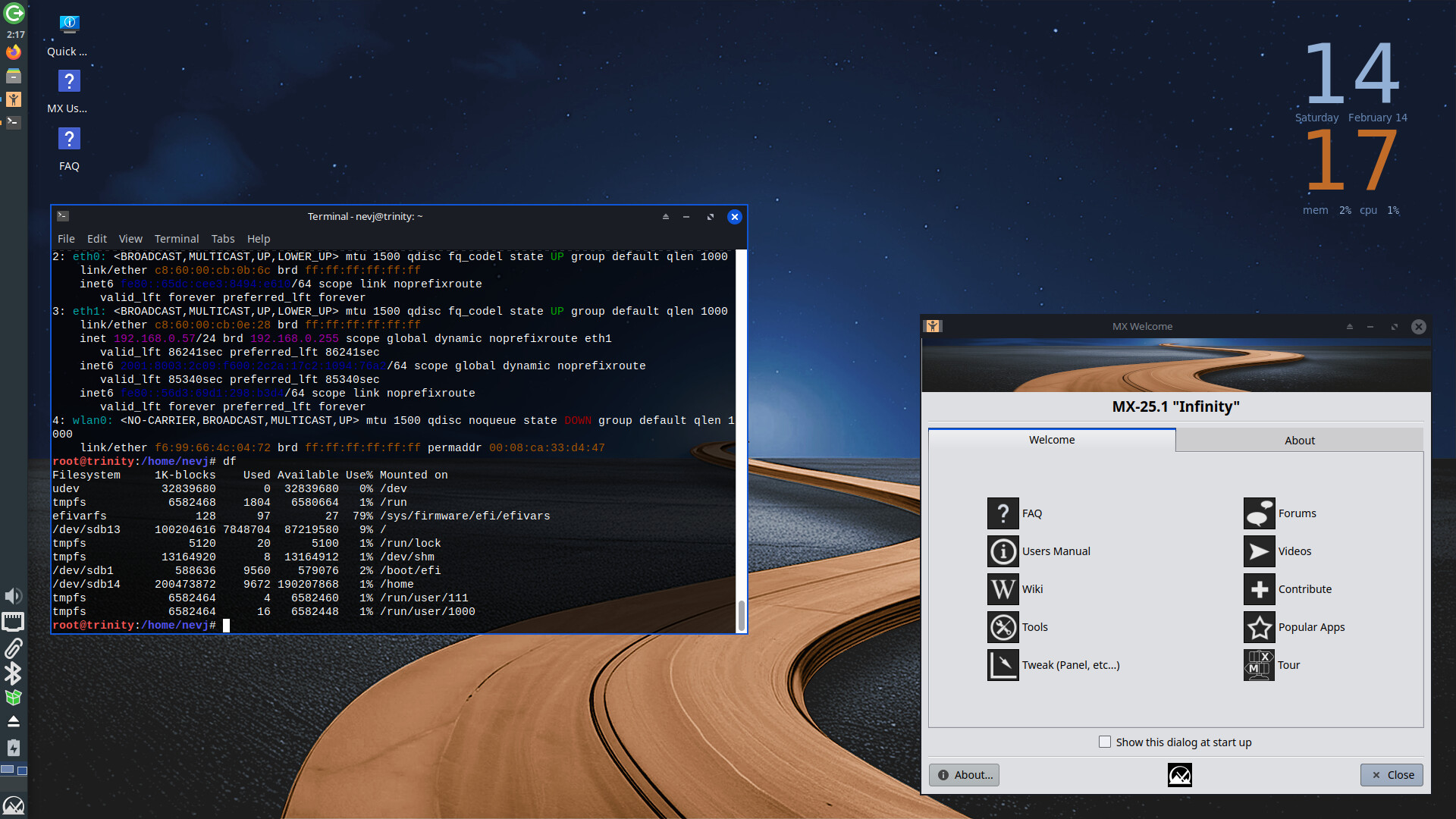 Lots to do … no local net, no printers, no apps, lousy background… I will run it alongside MX23 until I get it properly configured… maybe 6 months.
