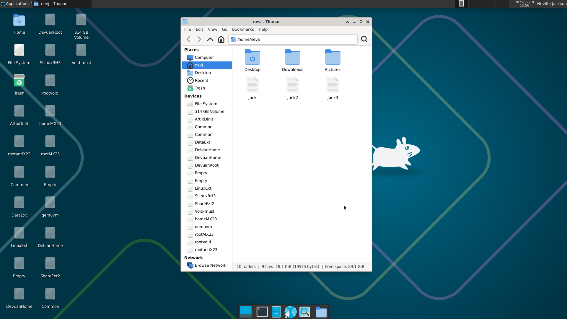 I added thunar-volman. Rebooted. Thunar is the same…only cdrom and usb.