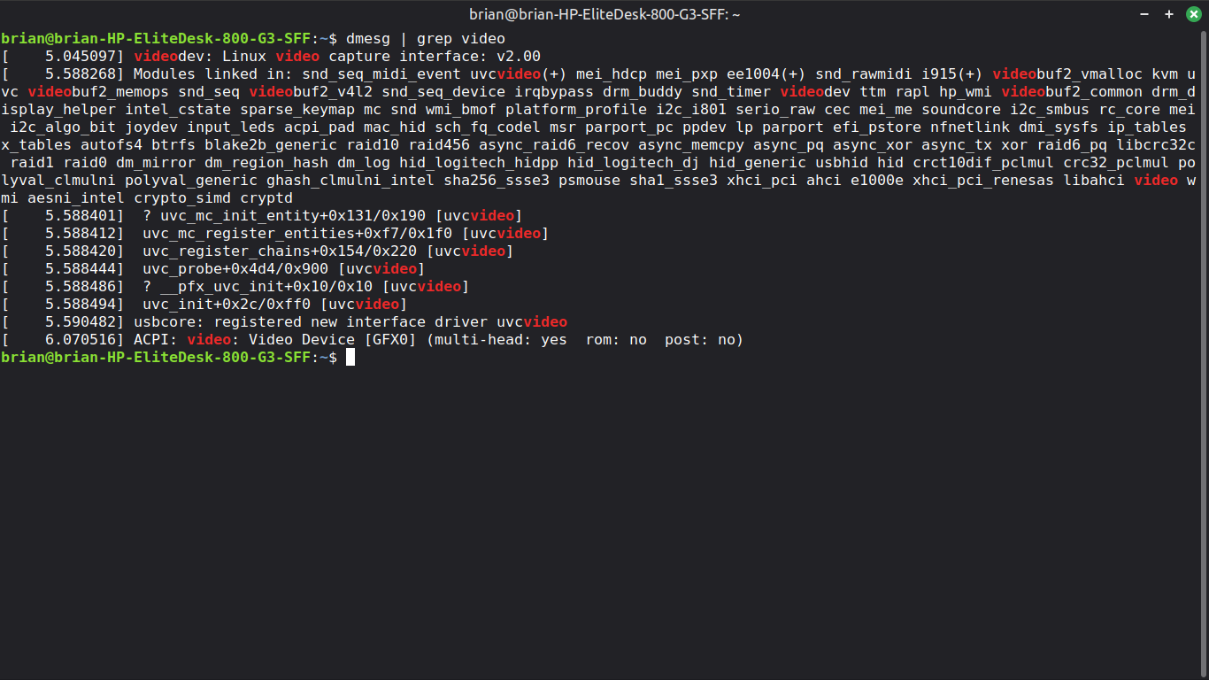 dmesg | grep video