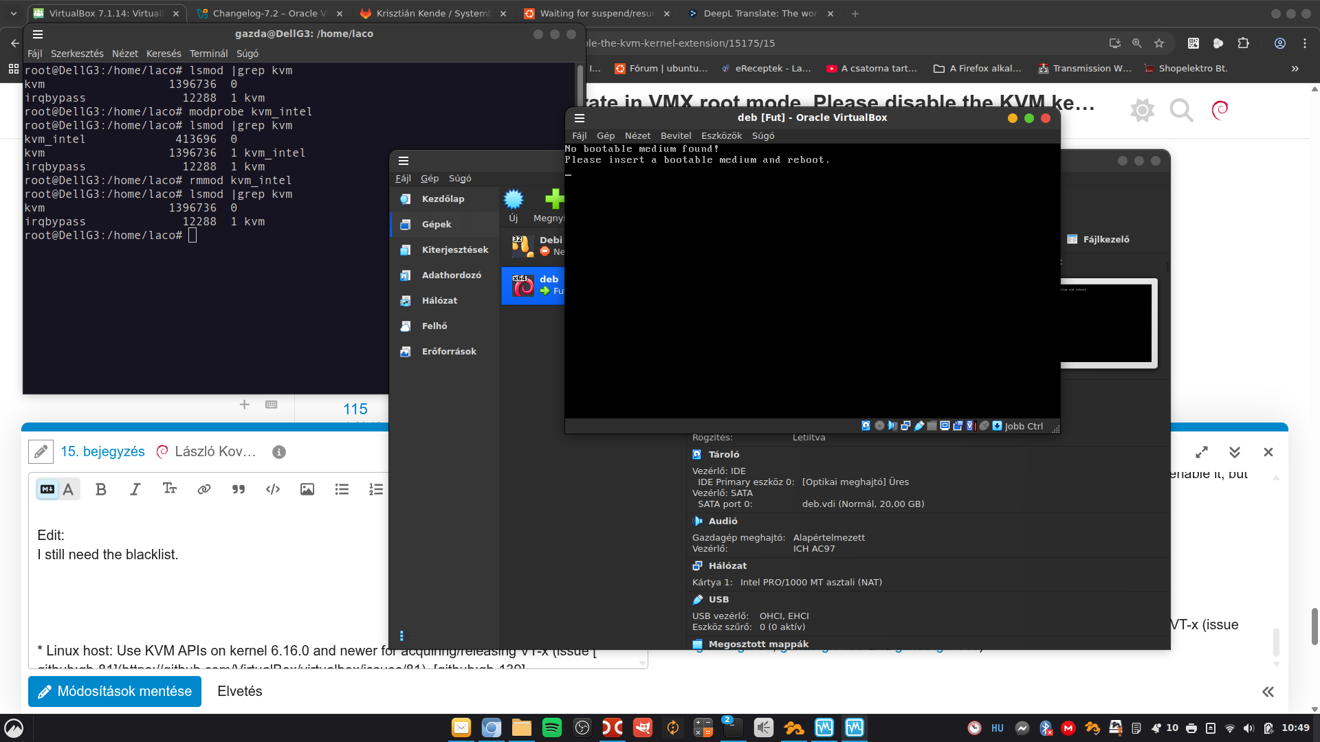 I did come across the change log of VirtualBox 7.2.2 -LINK- that mentioned this -fixed or added -Linux host: Use KVM APIs on kernel 6.16.0 and newer for acquiring/releasing VT-x